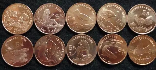 在從鋼芯鍍鎳過(guò)渡到黃銅的過(guò)程中,人民銀行發(fā)行了一套珍稀野生動(dòng)物紀(jì)念幣(共10枚)。