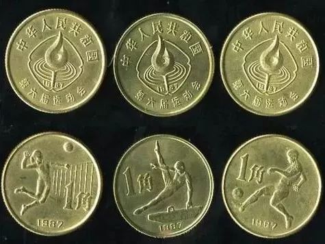 1987年發(fā)行的六運(yùn)會(huì)紀(jì)念幣一套三枚選擇了1角作為面值,六運(yùn)會(huì)紀(jì)念幣的材質(zhì)也變成了銅鋅合金。
