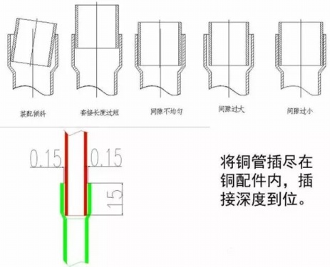 銅管插入接頭部分的表面,不得有任何種類的油脂、氧化物、污跡和灰塵,否則會嚴重影響釬料對母材的焊接性能,產生缺陷。因此,表面應用其它有機溶劑擦洗。銅管接頭一般是沒有污垢的,若有可用銅絲刷和鋼絲刷處理端部,不可用其它不清潔的用具進行處理。