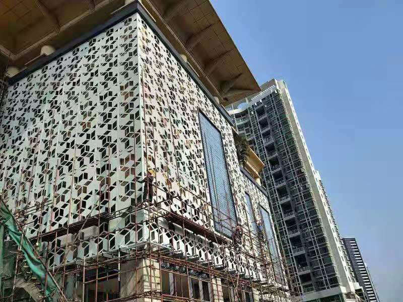 對于2.5厚氟碳鋁單板價格2.節能環保1)使用沖孔鋁單板還有一個好處就是有利于環保。用過的材料可再回收利用。瓷片,鋁塑板,大理石,蜂巢板等外裝材料相比,因其優越性的獨特而具有廣闊的發展空間。與玻璃,瓷片等材料相比,沖孔鋁單板具有圖案豐富,效果逼真,外觀精致。沖孔鋁單板與玻璃1.具有高檔裝飾性能作為建筑外裝飾的一種主要的選擇對象紋理清晰等特點。其采用的國際新型先進圖紋裝飾材料不僅起到了保護生態環境的作用。真正意義上拓寬了設計師們的想象空間。顏色是一部分,其表面也非常光潔,同方向無色差,平整度較好,現場加工性做的也很出色,可以為現場建筑誤差所引起的外墻尺寸變化做出處理。個性化的公共空間和家居天堂。3.色澤多樣化沖孔鋁單板外觀形狀是多樣化的。