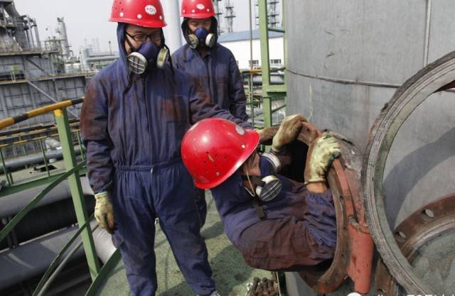 5.作業人員應按要求穿戴勞保用品。第一次進入密閉空間,必須佩戴好防毒面具(長管或空氣呼吸器),必須系安全帶和安全繩;