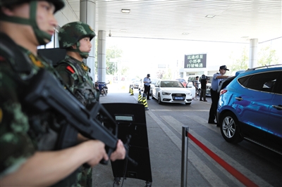 昨日,通州區白廟檢查站,武警持槍執勤。
