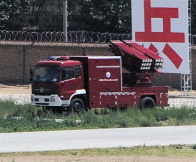 高層滅火導彈發射車:該車導彈發射系統可高精度探測瞄準,發射滅火彈快速滅火。
