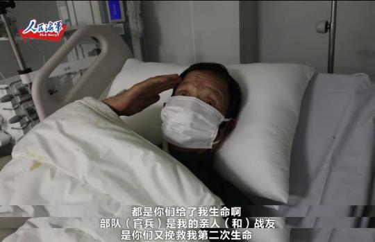 這名退伍老兵慢慢伸出顫抖的右手,向護士行了一個不太標準的軍禮。