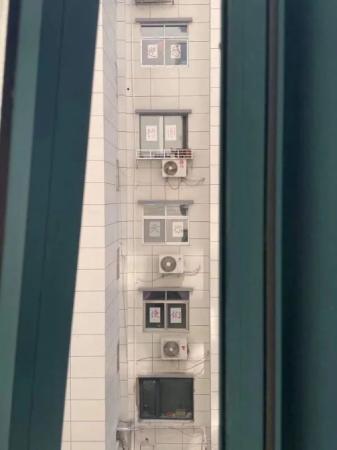 白紙紅字,格外醒目。8個大字,占據了4層居民樓的8片窗戶,此時,與小區一街之隔的一家酒店,仍然一片燈火通明,與之遙呼相應。