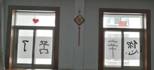 4戶居民迅速準備紙張,并開始用紅色的顏料筆書寫大字,“我們家負責‘天’和‘你’兩個字,由女兒來寫。”劉女士說,她則忙著準備膠布、擦拭窗戶上的玻璃。