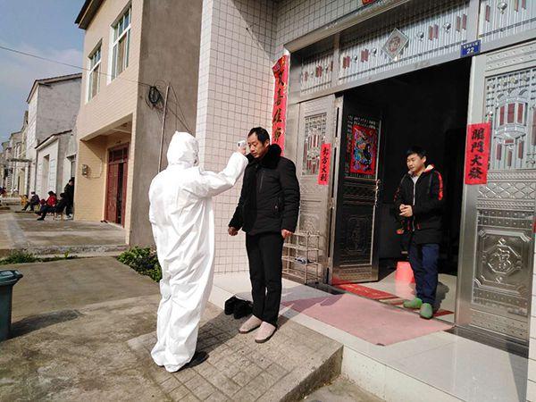 對于返鄉人員,村干部、村醫上門詢問情況,并為其測量體溫。對于從武漢返鄉的人員,需要重點“照顧”,每天需為他們測兩次體溫,并把結果上報鎮防控指揮部。