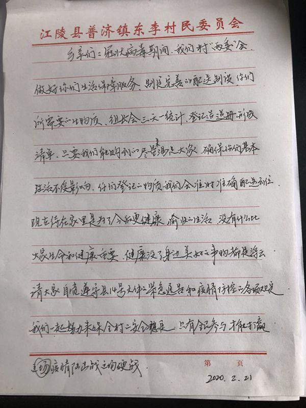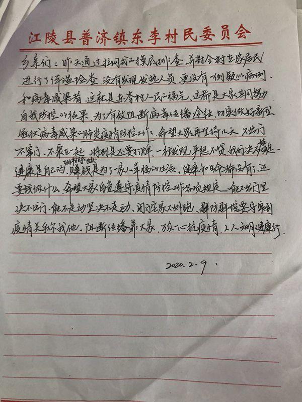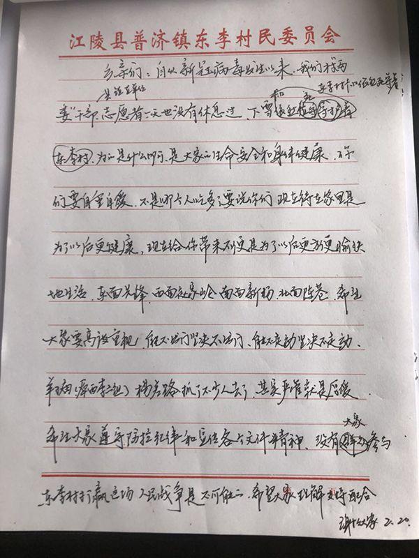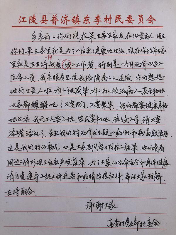 東李村位于湖北荊州市江陵縣普濟鎮,距離武漢200余公里。村子近年發展很快,已全部脫貧,是當地小有名氣的“明星村”。全村2100余人,返鄉人員共329人,從武漢返鄉的有53人。面對這場新冠肺炎疫情,東李村和其他村莊也一樣:嚴陣以待,封閉管理。