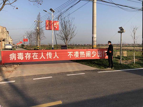 另一方面,面向村民的宣傳工作也在同步進行,有橫幅、廣播、顯示屏等宣傳形式。比如廣播就有村村響和流動廣播,村村響廣播除了宣傳相關政策、文件,還經常播報村民自己寫的廣播稿,主要提醒大家不出門、不串門、不聚集,每天至少播8遍。