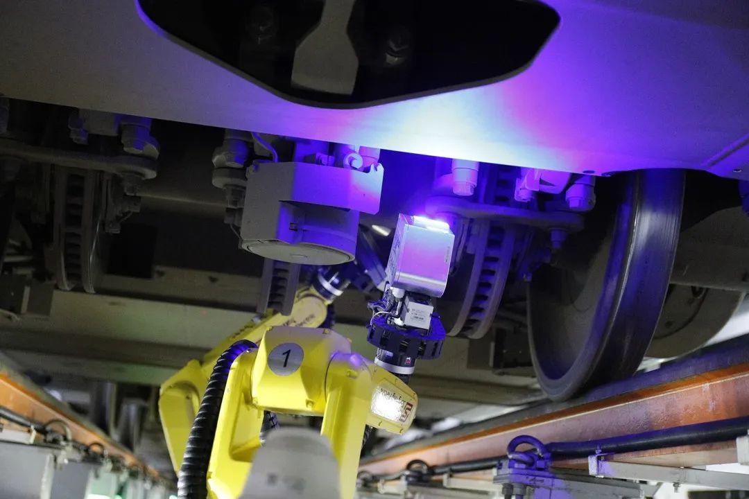 借助“眼睛”“大腦”和“手臂”及“雙腳”的精準配合,每一列動車數千個部位都被有效納入自動化檢測,一列8編組動車檢修時間從120分鐘縮短到60分鐘。