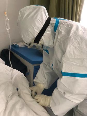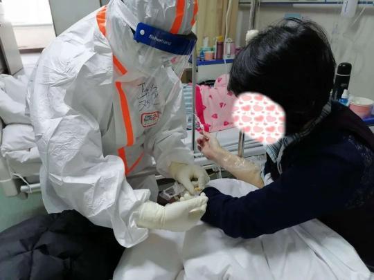 聶艷說,接到這個“特殊的任務(wù)”時,不求回報、無論生死在心里默念了無數(shù)遍。每天穿著厚厚的防護(hù)服進(jìn)入病房的時候,同事之間都會相互加油。有一回,給一位90多歲的爺爺換完尿不濕后,聶艷已經(jīng)滿頭大汗,但當(dāng)爺爺給她豎起大拇指時,她說自己高興得像個孩子。